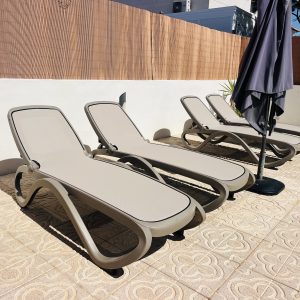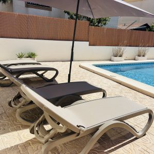 Het privézwembad (8 x 4 meter) nodigt uit tot een verfrissende duik, met rondom Nardi ligbedden en een parasol. Doordat de villa op het zuiden ligt, geniet je de hele dag van de zon.